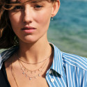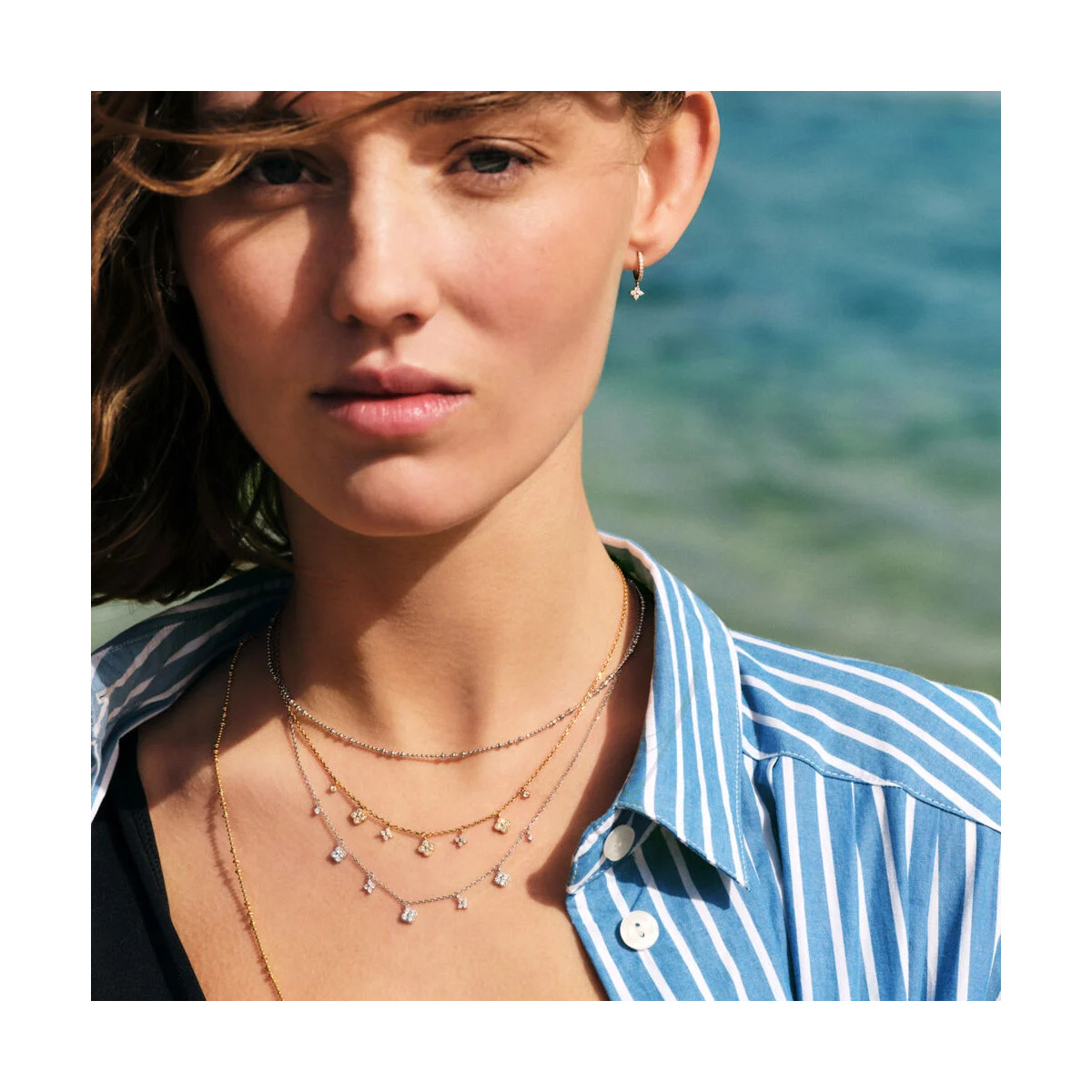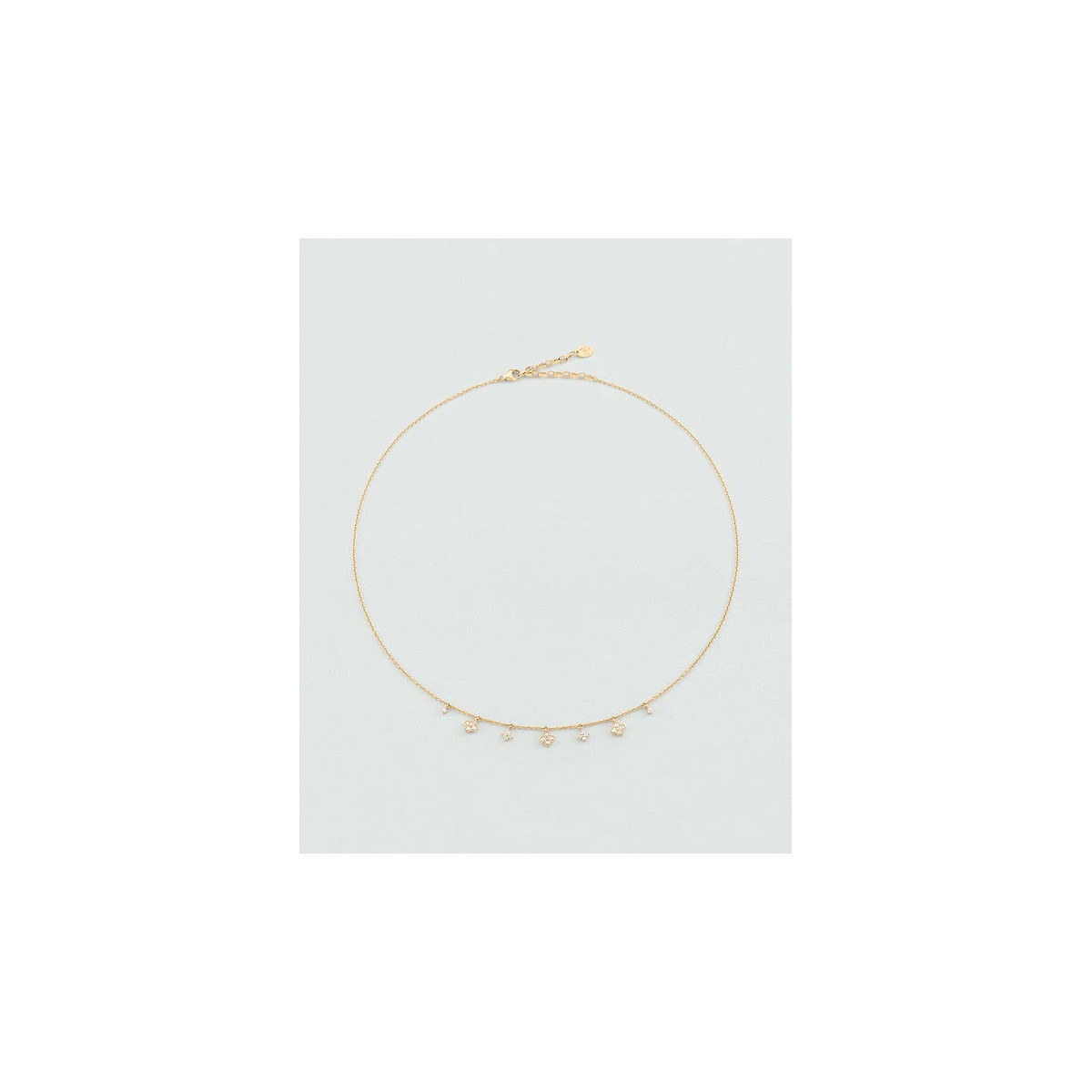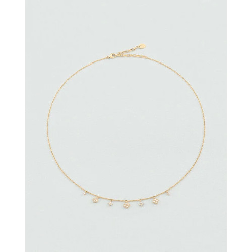 Collar de plata de ley bañado con 1 micra de oro de 18k y mini colgantes con circonitas. Llevable, combinable y tendencia, ¡el mix perfecto! Solo te queda decidir si prefieres la versión más neutra con circonitas blancas o el push de color definitivo para todos tus looks con las circonitas de colores.. Esta joya mide 420mm y tiene un alargo de 50mm